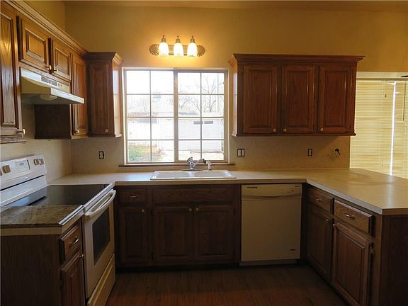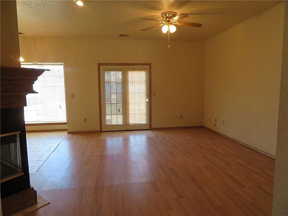 Great location! Open living area that features a custom fire place with French doors leading to outside patio. Kitchen has an eat in bar, glass top stove, and lots of cabinet space. Master bathroom features soaring ceilings, his and her closets and sinks, jetted tub, and separate shower. Master bedroom boasts vaulted ceiling, and dual doors into bathroom.