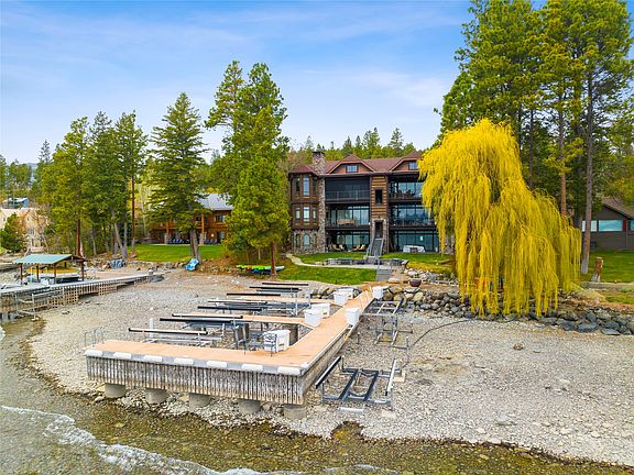Ease of use and incredible views from the great room, covered patio and master bedroom, make this third story condominium a must see. Located in Somers, Montana; this lake front condominium is located within an easy drive to Whitefish, Bigfork, Kalispell, Glacier National Park and Whitefish Mountain Resort. Relax on the expansive covered deck overlooking the lake or take the boat out from your own boat slip with hydraulic lift. Facing east to catch the morning sun and views of the Swan mountains, this condo is finished in extremely high end finishes. An elevator for ease of access and power sun screen to make the built in barbeque on the deck comfortable in the evenings. Use the association area near the lake for the fire pit and dock area to enjoy the lake in the evenings. Large tandem two car garage is large enough for your boat, water toys or RV. Only five other units in this development makes it a quiet getaway for relaxing on the shores of Flathead Lake.