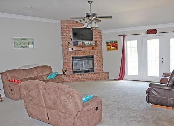 Custom, gorgeous 3/2/2 on a hill. On the outskirts of town, with your own large, shaded lot. Views of peaceful nature right out your back door. Isolated master suite with dual vanities, separate shower, garden tub; Large kitchen with breakfast area and separate formal dining area. Popular, open floor plan. Office area with built-ins. Large living with WBFP - great home for entertaining!