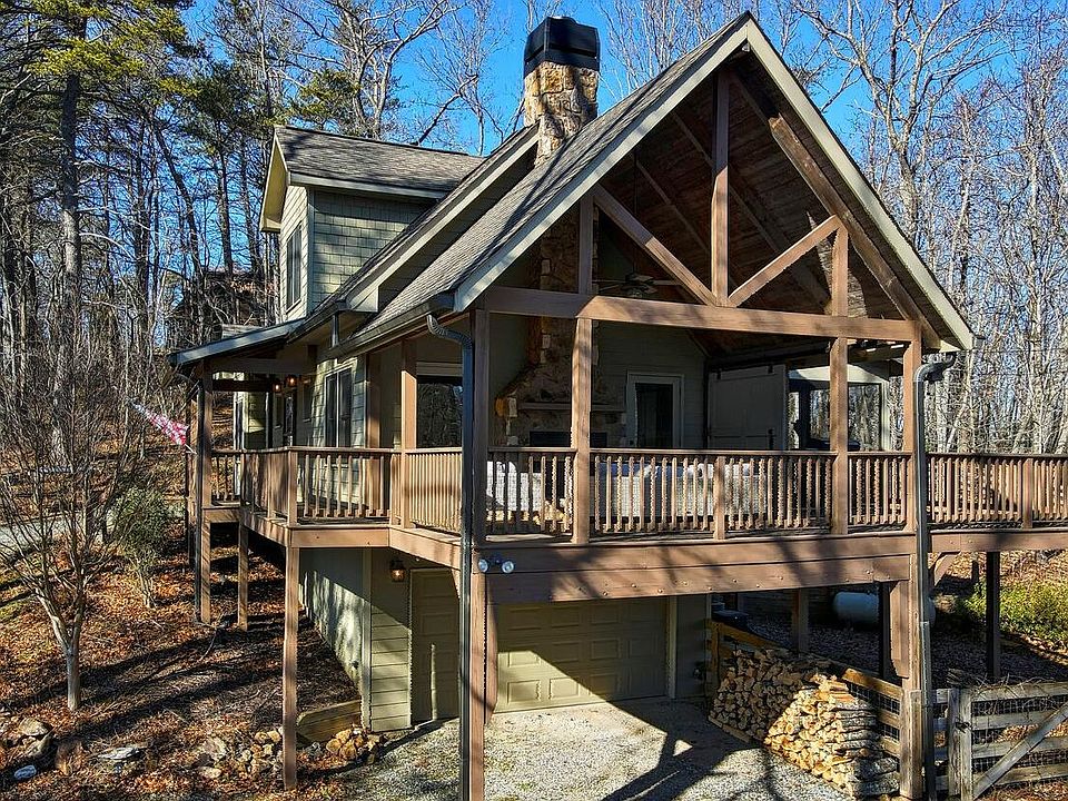 Private location on 2.5 level acres. Wrap around deck catches your eye - Cozy outdoor living space with screened in portion, sliding barn door, beautiful stone FP, & a mountain view that will never cease to amaze you! Grill out & host friends & family! Head inside to an open floor plan combines kitchen with island bar seating, dining area, & living room with stack stone FP that compliments the cathedral ceilings. Master suite on main with double sinks & walk in closets. Upper floor hosts 2 guest rooms & bath, plus open loft area to be used however you see fit. Space downstairs could be utilized as office space or home gym with bath, plus garage & shed on property for extra storage space. Fenced in backyard area perfect for pets or gardening. A little over 10 miles to DT Ellijay for local shopping & restaurants.