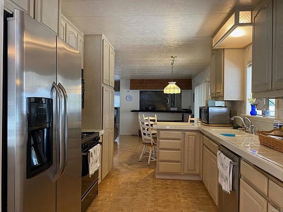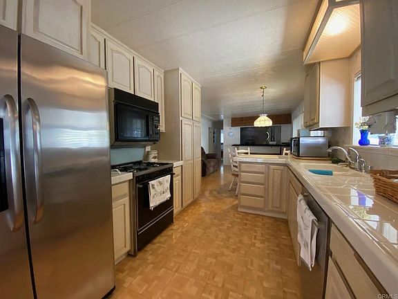 The most affordable way for seniors to live in San Diego! Own the land as well as the home. HOA is only $75 a month in this fantastic gated community. Orange Tree MHP offers its residents 2 swimming pools and a clubhouse, near great shopping and dining. This 1440sf home has a great floor plan; huge living room, great sized dining area, breakfast table and family/bonus room. Kitchen features white cabinetry, range, refrigerator and dishwasher. Indoor laundry space with washer/dryer included. Main suite has a large walk-in closet and an en-suite bathroom with dual sinks. Large guest bedroom and bathroom. Enclosed porch offers additional space for an office, sewing or hobby room.