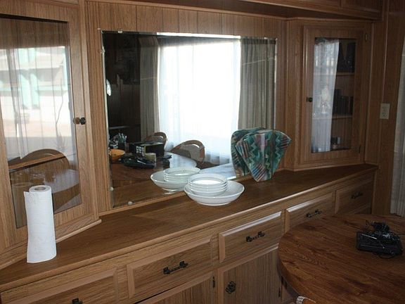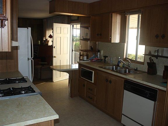 Own the Land in this excellent gated senior (55+) mobile home park with only $75 per month HOA. Nice double wide in excellent condition with updated kitchen & both baths. Very well maintained with new oven, DW, newer AC & newer stacked washer/dryer. Covered tandem parking for 2 cars & enclosed patio with handicap access. Very large floor plan with breakfast area, dining room, huge bedrooms & a unique full cocktail bar! Best location in the project backing to open space. RV parking available for a fee.