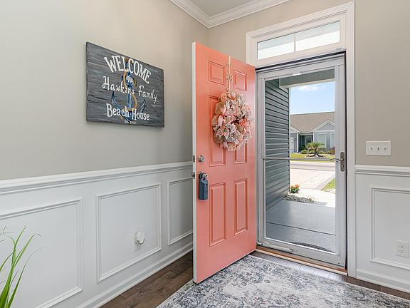 Welcome to 521 Oyster Drive, a stunning 3-bedroom, 2-bathroom ranch home boasting over 1900 sq ft of meticulously maintained living space. From the moment you arrive, you'll be captivated by the pristine condition and impeccable care this home has received. Built in 2018, this like-new home has been thoughtfully enhanced with numerous high-end finishes and upgrades that set it apart from the rest. It features a bright open concept floor plan and 3 spacious bedrooms as well as a flex room that could easily function as a home office, gym or 4th bedroom. The extensive list of improvements includes high-end granite countertops, tankless natural gas water heater, spacious screened-in porch/sunroom with premium CWS® vinyl horizontal sliding windows, durable epoxy coating on the sunroom and the garage, an additional window in the office for extra natural light, and double solar tubes to brighten the interior. The exterior features a beautifully extended paver driveway, custom Bermuda shutter, and elegant landscape rock with Curbscape® borders, and a whole-yard irrigation system. The addition of palm trees further enhances the curb appeal of this lightly lived-in gem. Located in the desirable Surfside Plantation community, you'll also enjoy access to exceptional amenities, including a clubhouse and pool. Don't miss your chance to own this impeccable home, where every detail has been carefully curated to offer the perfect blend of luxury and comfort.