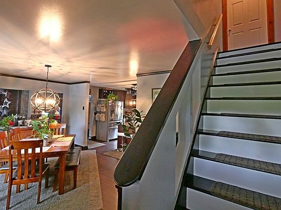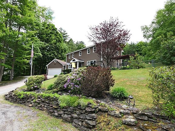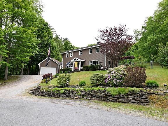 Located at the top of Pine Hill Road at the very end of the culdesac, this property has a mountain view, wooded backyard and within 1-mile to hiking trails. Sit around the firepit at the highest peak of the backyard and enjoy the view. There is also a fully enclosed fence for pets that only covers a portion of the cleared yard. The other outdoor features included in the sale of the property are the playset, trampoline, basketball hoop, porch swing, and pergola. Just inside the entry from the garage, you'll see the vaulted ceilings and spotlight with access to the deck and yard. Step into the updated kitchen adjacent to the dining room at the center of the home. A large family room off of the front door entry and a tucked away full bath and separate utility room completes the 1st floor. Upstairs there are 4-bedrooms and a full bath. The primary bedroom sits toward the front of the home and has an additional 1/2 bath. The roof and vinyl siding has been replaced within the last 10-years. Brand new oil furnace and fuel tank installed November, 2023. This home could also be a great contender for solar as there is little to no roof coverage throughout the day.