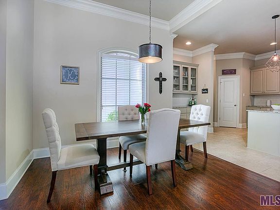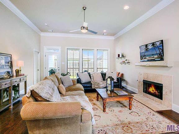 Call or text 225-335-5395 for more information. Just completed for you! This new construction home, built by an experienced builder from Florida, charms you from the beginning. With robin's egg blue shutters and cypress column, large arched window and multi-paned front door to welcome you and your guests. Gleaming wood floors, contemporary drum lighting fixtures, fireplace, nine foot ceilings, triple windows overlooking the backyard, and spacious kitchen greet you as you enter. The open dining & living area opens to the kitchen with slab granite countertops, island, gas range, microwave, and a special feature with a china cabinet/buffet cabinet alcove. So much counterspace and storage! The split floorplan offers privacy for the master suite which includes Japanese soaker tub, separate shower and two granite topped vanities with stylish framed mirrors and lighting. The walk-in closet will hold it all. Two bedrooms share a bath along the opposite wing of the home. And double garage. University Villas is a popular gated community off Burbank that provides a clubhouse and pool overlooking the lake with walking trails and green space. This home is READY!