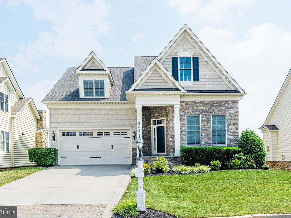 Ease into Living with this Bulle Rock Beauty situated overlooking Hole 1 on the world class golf course. From the Welcoming Bluestone porch entry to the Stunning sunsets with the Chesapeake Bay in the background, you can immediately see why making this your Home would be Wonderful! Great Open floor plan with hardwood throughout main level and upstairs Primary suite and loft, Formal Dining Area, Formal Living Room, Butlers Pantry, Granite Kitchen Counters, Stainless appliances, Great Room/Family Room w/gas Fireplace, First Floor Bedroom or Office with own private Bathroom, Maintenance Free decking for admiring the million dollar views. The Upper Level features a Generous sized Primary Suite with a tray ceiling and walk-in closets, 2 additional Bedrooms and a loft for office/reading area. Lower Level is unfinished, has extra high ceilings, a rough-in for future plumbing , tons of storage area and walk out french door. Upgraded vinyl clad wood windows and custom shades and blinds throughout home! Community Center offers with indoor/outdoor pools, tennis courts, and gym, Completing the package is miles of walking trails, and an on-site Pub and Grill. A Great Place to call Home!!