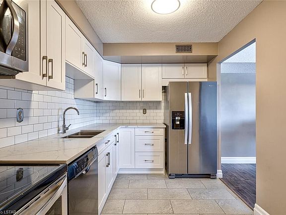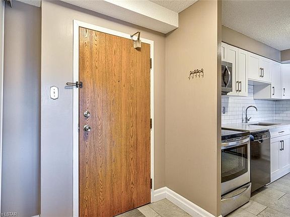 Welcome Home to unit 615 at 521 Riverside Drive. This gorgeous 2-bedroom, 1 bath condo has many updates & features some of which include; Brand new kitchen with solid surface countertops, updated bathroom, tiles and laminate floors throughout (carpet free), in-suite laundry, enclosed sun room with a nice view, underground parking and ample guest parking. Some of the building amenities include a Common room, Library and Gym. This unit is located at the West end of town across from the Thames River, trails, shopping and public transit. If you're looking for a Condo, this unit has it all!
