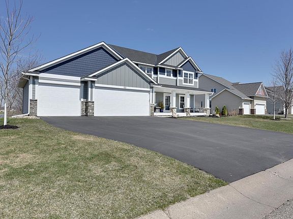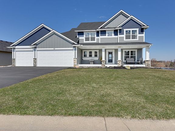 Beautiful Custom Executive Two Story on Rowena Pond. New Prague schools, open floor plan, fireplace,granite counters, wood floors, LVT. Gourmet kitchen and all the amenities you would expect, large walkin pantry. Luxurious owners suite, walk-in shower, massive walk-in closet. 4 bedrooms upstairs.Officeand study area on the main level. Walkout lower level with large family room, 5th bedroom, and 3/4 bath.Large wrap around deck with patio off of lower level. Full covered front porch, oversized finished 4 cargarage. Walking distance to parks and many amenities!
