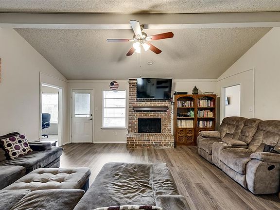 MULTIPLE OFFERS RECEIVED. HIGHEST AND BEST OFFERS DUE BY MIDNIGHT, WEDNESDAY JANUARY 13TH. Functional and cozy 3 bed 2 bath home with no HOA! Centrally located near major highways for quick commutes. Beautiful brick, wood burning fireplace and vaulted ceilings in the living room. Brand new flooring and paint throughout living room, hall and entry way. Eat in kitchen offers plenty of cabinet storage plus a breakfast bar. Split bedroom concept with utility room tucked away by garage. Master bathroom has a separate vanity and two walk in closets. Private backyard setting, extended patio with firepit, perfect for a night by the fire with friends and family. Come take a look!!