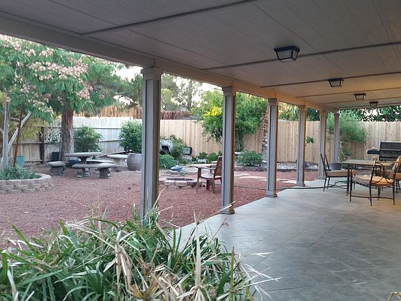 Great starter home! Very open floor plan featuring a fireplace and large picture window in the living room. Indoor laundry room. Master bath has jetted tub. New swamp cooler & heater. Fresh paint - inside & out. New Roof. Beautifully landscaped front & back yard which is a sheltered haven, shady and cool. Along with a very large covered patio & concrete bench/table set. Great for dogs & children. Also large side yard with RV parking. This home is very comfy & energy efficient. Comes with stainless steel fridge, stove, and dishwasher. 2 car garage has lots of attic storage as well.