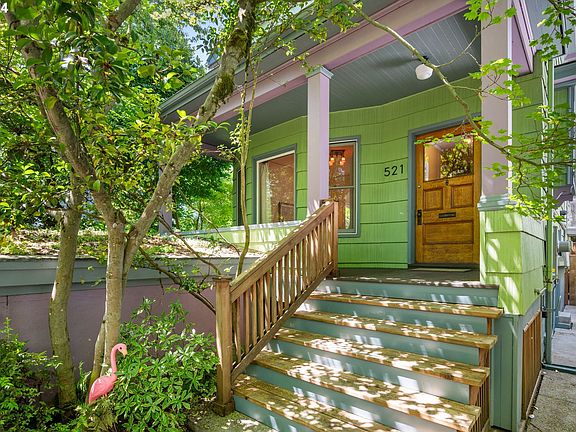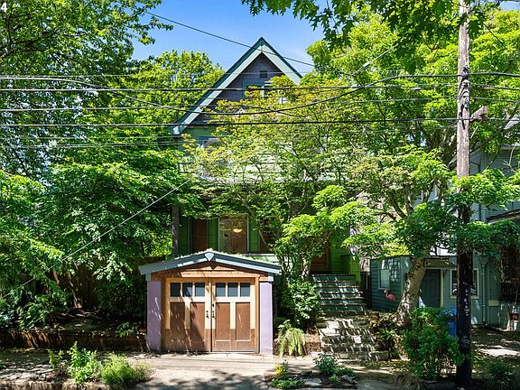 Welcome to the Buckman neighborhood in close-in SE Portland, where stunning old homes, great parks, restaurants, bars, and coffee shops reign! This beautifully updated classic 1904 Victorian is situated up off the street on this quiet residential block. Yet with a walk score of 94 and a bike score of 97, you are just minutes from fabulous food and drink, great music and events at Revolution Hall, the convenience of Oregon family-owned Market of Choice grocery store, the Hopscotch immersive art experience, and so much more. This home has been thoughtfully and practically updated while retaining plenty of original character. It has a Home Energy Score of 4, which is above average for a house of this age and size. Updates include: seismic retrofitting, owned solar panels, two new heat pumps installed in 2022 (one for upstairs, one for the main floor), new exterior paint in 2019, 250-gallon hot tub on rear balcony with brand-new motor, new paint throughout much of interior, new vanities and faucets in bathrooms, and much more. The ground floor features spacious, light and bright high-ceilinged rooms and a sizable kitchen with ample working space, storage and an eat bar. You'll find the fourth bedroom on the main floor with a full bath just next door. Upstairs, the sizable primary bedroom includes double closets, and the third bedroom accesses the upstairs deck with hot tub - perfect for relaxing in summer or winter and everything in between. The roomy, fully finished basement has a separate exterior entrance, and works great as a playroom, workout area, office space - or all three! The garage features an eco-roof and electricity. The private, fully fenced backyard has curved slate pavers with a fire pit in the rear garden and is a Certified Backyard Habitat. Don't miss this opportunity to be close to everything, while experiencing your own private oasis in this stunning Victorian home. A one-year warranty will be provided to the buyer at closing. [Home Energy Score = 4. HES Report at https://rpt.greenbuildingregistry.com/hes/OR10227744]