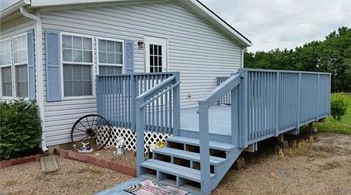 Very nice manufactured home on a full basement with 1.9 acres of land. House has been reversed so the kitchen would get the morning sun. Large kitchen and breakfast room. Wood decks on all three exits. Master bathroom has a Jacuzzi tub. Full basement that could be finished to add extra room. Daughter said roof was replaced approximately 2 years ago. Washer and Dryer are staying with the home. Easy access to highway 50 and DD. Home is currently on a VA loan.