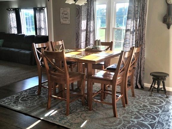 Edge of town location for this 3 bedroom, 2 bath ranch home situated on 1.50AC. This property features an open floor plan, a spacious kitchen with custom cabinets, granite counters & island, appl. to stay, large pantry, primary suite with dual sink vanity, basement, screened-in porch, det. 24x32 garage, 12x20 shed, & 10x16 shed.