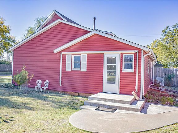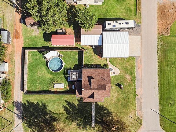 3 Bedroom home with a SHOP and POOL for Sale in Canute, OK. Nestled on 5 lots at the corner of 6th & Scheidel, this home is walking distance to the school and downtown. Shop is 24 x 20 with 2 overhead doors, in addition there is a 16 x 8 mancave with covered parking and an RV carport. The backyard oasis has an 18 foot above ground swimming pool, pergola and deck along with a Generac generator and storm shelter; all surrounded by a wooden privacy fence with concrete runner. Walking into the home from the farmhouse feel front porch, you are welcomed by new laminate flooring in an open living space. Kitchen and dining room has an open feel and adjoin the mudroom. Primary bedroom adjoins the primary bath that has a walk-in closet with built in shelves, step in shower and recently remodeled. The entire upstairs has 2 bedrooms. In addition, the property has its own well. New roof in 2022. This place has such a cozy feel and is waiting for you to call it HOME!