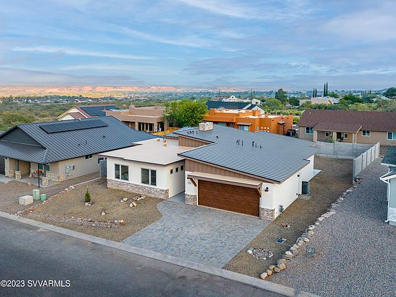 Impeccable custom home by Jamison Builders, in the scenic foothills of Clarkdale in the highly desirable Crossroads Subdivision. Picturesque distant views of Sedona, upscale custom homes, park, walking trails and just a short drive to Cottonwood. Designed with complete luxury and energy efficiency in mind, the list of features is extensive (see attached for full list), metal roof and gutters, high grade insulation throughout, kiln dried framing lumber, tongue & groove pine porch ceilings, heating and cooling with ERV ventilator, Thor appliances, quartz countertops, delta fixtures, custom tiled showers, a stunning brick designed gas fireplace and more. Seller financing at 5% interest available, call for additional terms. Surround yourself with absolute elegance in your new home!