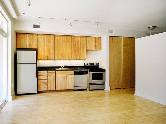 Third-floor residence located in a loft-style apartment building with elevator access; central air conditioning; hardwood floors; high ceilings; open kitchen with refrigerator, range, microwave and dishwasher; private washer/dryer in apartment; garage and off-street parking available for an additional monthly fee. Resident is responsible for electric, water and sewage. Off-street, uncovered parking: $50.00/month; Garages (where available): $115.00.