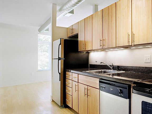 Third-floor residence located in a loft-style apartment building with elevator access; central air conditioning; hardwood floors; high ceilings; open kitchen with refrigerator, range, microwave and dishwasher; private washer/dryer in apartment; garage and off-street parking available for an additional monthly fee. For more on this and other Franklin West, Inc. Year