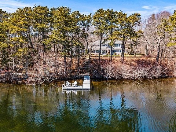 Views, boating, beaching, entertaining & just enjoying is what life is like at this elegant home w/ panoramic views of Lake Wequaquet*Gorgeous gardens & idyllic front-covered porch are quintessential Cape Cod*An inviting open floor plan allows for entertaining family & friends*The living room has built-ins surrounding a gas fireplace & dining space w /sliders to a back deck for outdoor entertaining*Gourmet kitchen has Thermador appliances, stunning new quartz counters & tile backsplash, full walk-in pantry, a beverage station & oversized island w/ water views that are neverending*The first-floor family room has newer built-in cabinetry & access to the outdoors*1st flr primary en-suite bdrm is perfect for 1 level living or guests*The 2nd flr media room has a gas fireplace, full-service beverage ctr, & leads to an amazing screen porch overlooking the lake*2nd flr primary suite has a renovated dual vanity bath, large walk-in closet & spectacular water views*Lakefront 40' dock is yours!
