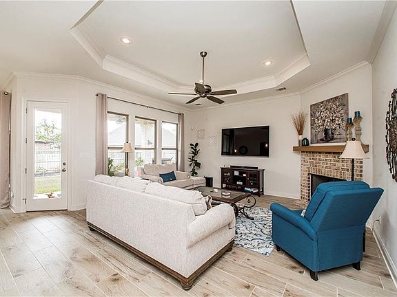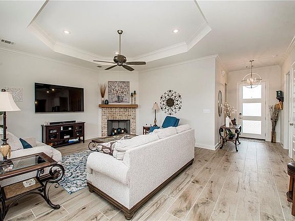 Built in 2018, this well-appointed home has a bright and sunny interior with up-to-date color choices. The beautiful and lush landscaping provides a warm and inviting feel before even entering the front door. This home has 4 bedrooms, 2 full baths and a separate office/craft room off the kitchen. The kitchen overlooks the living room which features a cozy fireplace, tray ceiling and a wall of windows that overlook the backyard. There is wood tile flooring throughout and carpet in the bedrooms. This is a split floor plan with the primary having its own separate wing of the house. The primary suite is a retreat and has its own ensuite bathroom, a spa like tub and nice shower. There is a 2-car garage and mudroom off the garage. The landscaped backyard has an extended patio perfect for entertaining and is fully fenced in with rear yard access. An additional perk is this subdivision has sidewalks making it perfect for morning strolls!
