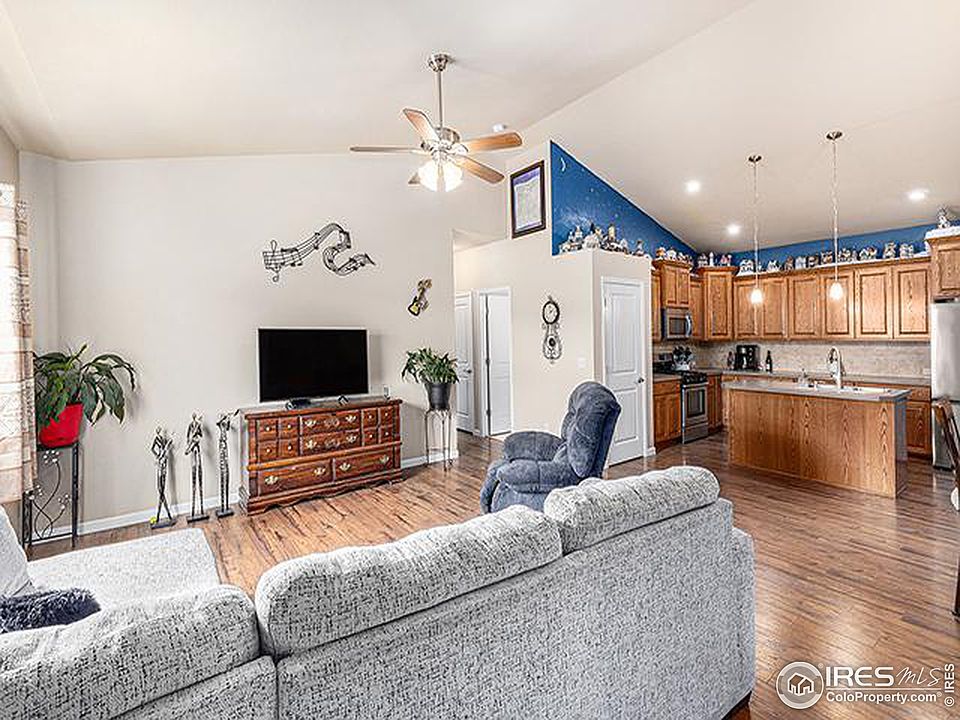 Enjoy main floor living in this 3 Bedroom 2 Bath Ranch style duplex. The home has an open floor plan that includes volume 9 'ceilings, spacious rooms, convenient kitchen island, stainless appliances including gas range, oversized garage, fenced yard with nice sized patio. Close to the Rec Center, and there is even a solar system included in the price, to help cover those electric bills! This home has lots to offer at an amazing price point.