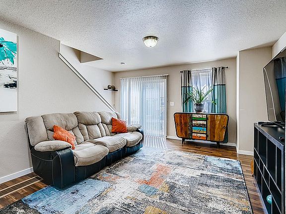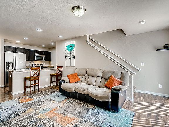 Stop Renting and OWN! Beautifully maintained 3 bed/2.5 bath townhome in the Sundance Townhomes Community of Dacono. This is the ideal place to start your journey up the property ladder! Low maintenance living- no mowing, no watering! This home needs for nothing ready to go. Large open feel and gorgeous wood flooring throughout the main level. Beautiful kitchen with dark stained cabinets, granite countertops, ss appliances that open to the living room. Main floor laundry and powder room. Upper level offers a huge master bedroom with its own bath and walk-in closet, 2 bedrooms and a full bathroom. Upstairs carpet was professionally cleaned after sellers moved out. Great 1-car attached garage. Enjoy the outdoors walking out from your living room. Near shopping, schools, parks & rec center. Easy commute to Denver, Boulder, Loveland, Ft. Collins and DIA. Hurry to see this one for yourself!