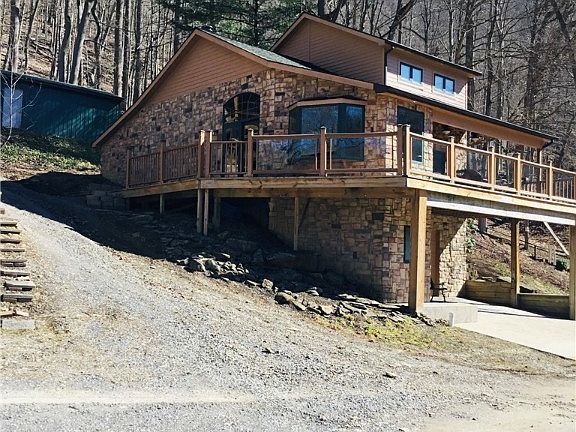 This gorgeous year round retreat includes 50 ft access along the Mahoning creek leading to the Allegheny river. The exterior of stone and hardy plank make for lovely curb appeal. Enter the lower level from the beautiful stamped concrete driveway. This level houses the kitchen, a full bath, laundry, open entertainment, all with radiant heated floors. As you ascend to the main level you will find an open living, dining, game room boasting cherry cathedral ceilings, recessed lighting, a wood stove, stone and cherry brick accent walls, and a full bath. The 2nd bedroom serves as a bunk room which currently sleeps 16. The top floor master suite features a lighted spa tub and large walk-in closet. All of the Pella windows contain built-in blinds. The show stoppers are the wall of windows on the main level letting in tons of natural light and leading you out to the wrap around deck with tempered glass railing letting you soak in all the views!