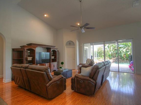 Welcome to 521 Strathclyde Court in beautiful Rock Springs Ridge!! This great 4 bedroom, 3 bathroom, 3 way split plan home is ready to enjoy!! The home is presented on a giant and private cul-de sac lot, the home has French doors, Hardwood floors, soaring ceilings, a huge owners retreat with a spa like bath with a jetted tub and travertine floors.. The very low maintenance salt water screened pool and spa are also solar heated, the pool is deluxe and has 5 water features!! The home has just been painted in and out, the front yard has been professionally landscaped and features low maintenance Zoysia turf!! This home is currently zoned for the well regarded Wolf Lake Elementary School, Wolf Lake Middle School and Apopka High School.. The Field of Dreams recreational complex is just around the corner.. Call today to see this special opportunity!!