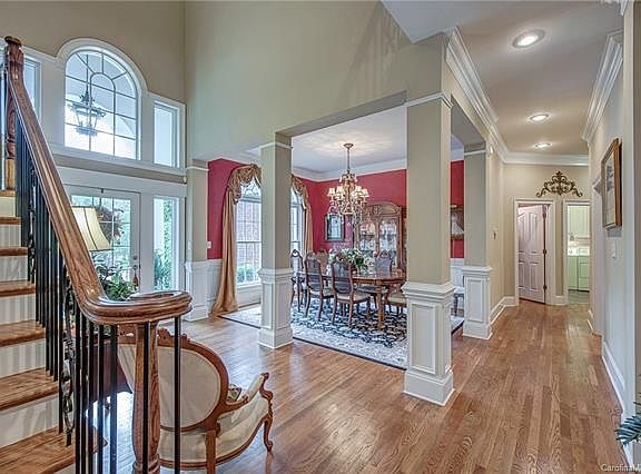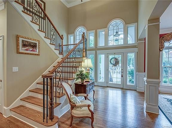 Gorgeous home with open floor plan and lovely outdoor living space. Almost 4000 sq ft of quality construction with all the upgrades. The main level features great room with a wall of windows overlooking the private backyard, formal dining room and gourmet kitchen open to den/keeping room with fireplace. The main level master suite has feature ceiling and his/her closets & vanities. There is also an additional bedroom with full bath on the main level. Upper level offers three spacious bedrooms plus a bonus room and walk in attic storage. Other details in the home include large laundry room, double ovens, gas cook top, trash compactor, central vac and a three car garage. A covered porch with brick pavers and patio area lead out to the wonderful yard with lots of trees. Located on cul de sac street in private gated community just minutes to Uptown Charlotte, airport & Lake Wylie. Golf, tennis, swim & dining membership is available.