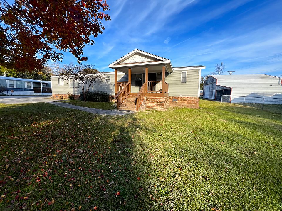 $1,565 per month and water, sewer, electricity, gas, trash, and lawn care are included in the monthly rent!! 3 Bedrooms | 2.5 Bathrooms. Appx. 1250 SF. Newer modular home with a covered front porch and covered side porch. Carpeted living room with eat in kitchen featuring a fridge, stove, dishwasher and ample storage space. Half bathroom located off of the living area for convenience. HUGE master bedroom that has its own private entrance onto the side deck. Second bedroom features a walk in closet and attached private ensuite complete with a soaking tub, spacious built in vanity, and stand up shower. Roomy third bedroom has access to the full hall bathroom complete with built in vanity and tub/shower combo. Washer and dryer connections are located in the laundry room. Partially fenced in yard. ELECTRICITY, WATER, SEWER, TRASH, AND LAWN CARE ARE INCLUDED IN THE MONTHLY RENT PRICE! No smoking. Pet negotiable, subject to owner's approval and fees. Available now for immediate move in! One Year Lease Term. Electricity, water, sewer, trash, and lawn care are included in the monthly rent. Security deposit is equal to one months rent. Application fee is $60.