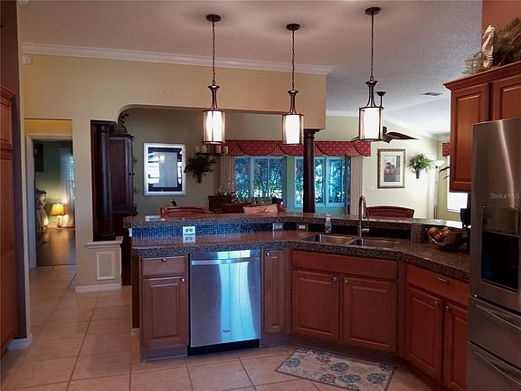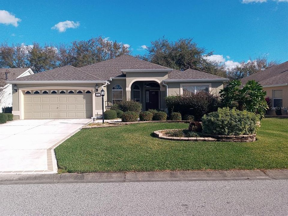 LOCATION, LOCATION, LOCATION, This beautiful Gardenia Model Designer Home has everything. It is a 2 bedroom with den that can easily be used as a third bedroom. No carpet, it has large tiles and beautiful laminate wood floors through out. Granite counter tops, walkin shower in master, his and hers walk in closets. It has sliding pocket doors to open up to the extremely large glassed in lanai. There is a outside patio area in the back. The home comes with some very nice furnishings and decor. The home backs up to privacy shrubs so no neighbors behind you. It is truly walking distance to pool rec area and mailboxes. Its in The Village of Belvedere so its close to shopping, restaurants, golfing and it is minutes away from Sumter Landing and Spanish Springs Squares. This home would be great for entertaining or just relaxing with its open floorplan. This will not last long, so come check it out today. Better photos coming soon