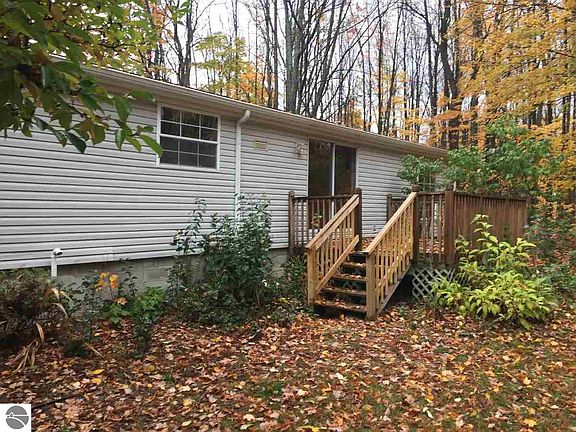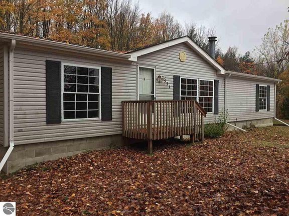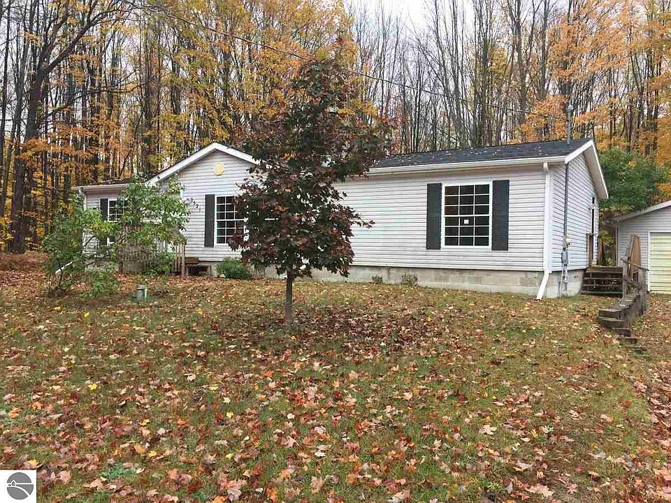 Ranch home on a full basement. Nice location, just south of Kalkaska. This manufactured home on 3.5 wooded acres features 3 bedrooms, 2 baths, and a large detached 2 car garage. The basement has studded partitions but is not finished. Very nice front and rear yards, in addition to the wooded portion of the lot. Measurements are approximate.