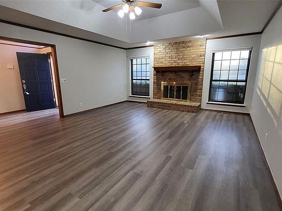 Walk into this wonderful home and experience the high ceilings and open feel! Huge living area with vaulted ceiling has cozy gas fireplace with built-in bookcases and cabinets. Master Bedroom is very roomy, with a walk-in closet and oval window for lots of light. Master Bath has double sinks with a separate shower and toilet, plus lots of storage. Kitchen has breakfast bar, eating area and big pantry, along with a new electric stove and microwave. New flooring and fresh paint throughout. The big backyard has a covered porch and storage building. Highly desired Norman Schools, and right in the heart of Norman!
