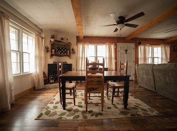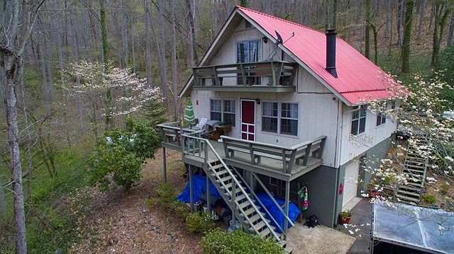 Lovely well kept home on a very private 3.64 acres. Wintertime Mountain View. Open floor plan with exposed beams. Gas Log Fireplace. New laminate flooring 2015. New metal roof in 2014. Nice sized Pantry. Master bedroom/bath on the main living area. Both Showers in bathrooms are tiled. Two bedrooms and full bath upstairs, sliding glass doors lead to a balcony. New carpet upstairs. Plenty of storage in the basement. Acreage consists of 3 lots which could be divided as was originally and have 2 lots for building. Let us show you this fine home today!
