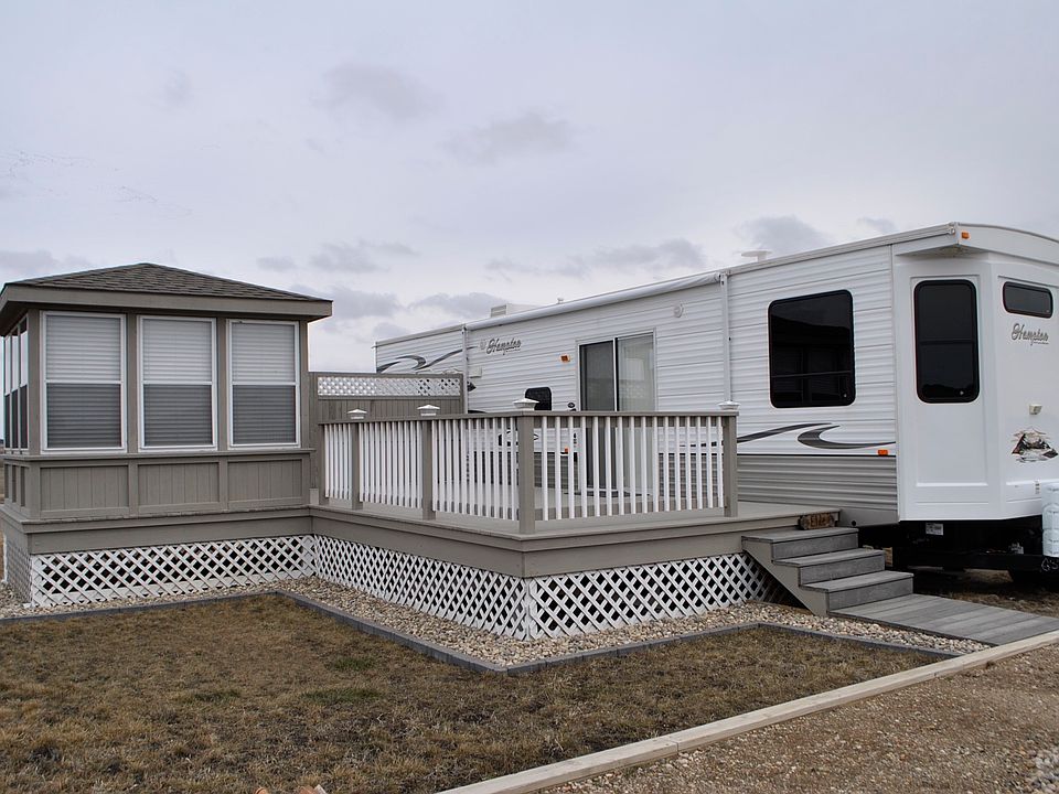 .55 acres lot at Ackermans Acres Devils Lake with 40' 2013 Hampton 380 DB camper. Wood deck with gazebo. Great amenities of Ackermans Acres: marina access, fish cleaning, bait shop, bar & grill. Covenants available.