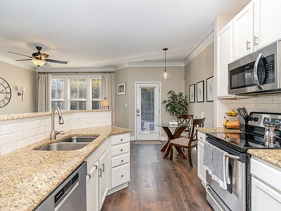 Step into a beautifully updated 3-bedroom, 2.5-bath townhome for sale in Apex, NC, where thoughtful design meets natural serenity. Located in one of Apex's most desirable communities and just steps from the scenic Beaver Creek Greenway, this home offers the perfect blend of comfort, style, and connection to the outdoors. From the moment you arrive, the charming double front porches offer a warm Southern welcome and the ideal space to enjoy morning coffee or sunset views. Inside, you'll find updated flooring, newer carpet, and abundant natural light throughout. A versatile front room with wainscoting is perfect for a home office, formal dining, or creative flex space. The open-concept kitchen features stainless steel appliances, a raised bar for casual seating, and seamless flow into the cozy living area—complete with a built-in TV niche and fresh carpet underfoot. Upstairs, the spacious primary suite includes a garden tub, separate shower, dual vanities, and a walk-in closet, creating the ultimate retreat. Two additional bedrooms and a full bath offer plenty of space for family, guests, or hobbies. Out back, enjoy a newly added deck and a low-maintenance private yard—perfect for relaxing, gardening, or play. With direct access to the greenway, outdoor living is truly just steps away. Additional upgrades include a new HVAC system installed within the past 5 years, ensuring comfort and efficiency year-round. Located minutes from Downtown Apex, Beaver Creek Commons, top-rated schools, and major highways like US-64 and NC-540, this home delivers unbeatable convenience in a peaceful, nature-connected setting.