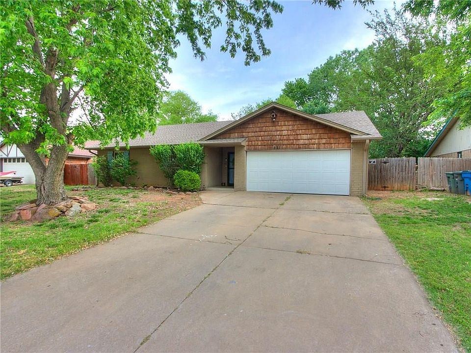 This 3 bed, 2 bath, 2 car garage home is nestled in a fully developed neighborhood in the heart of East Edmond. Walk to all your local favorites from this Cul-de-Sac located home. The entry opens to the spacious living area with brick fireplace tiled throughout all living areas. The kitchen features a walk-in pantry, stainless steal appliances, and granite countertops! The master suite is roomy and features an en suite bath and walk-in closet. The utility-room is located in the house. The back yard is surrounded by fully matured trees and offers a concrete patio and tons of space for entertaining family and friends. Windows have been updated and the garage door is new.