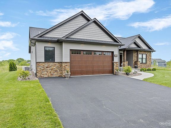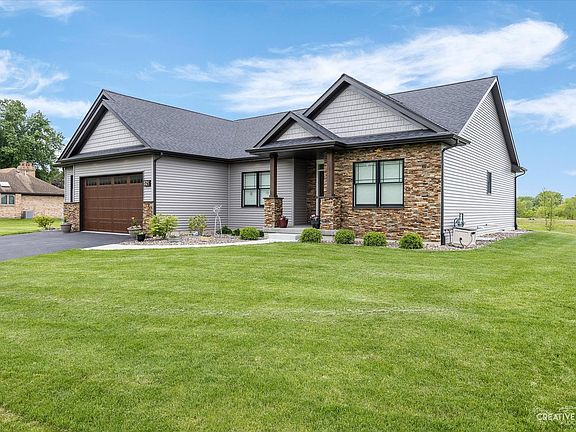 Where to Start! This stunning 2 year new custom built ranch offers just over 1900 sq ft, a open concept floor plan, & a full bsmt! This 3 bedroom 2 bath plus Den offers a split bedroom floor plan perfect for the primary suite hideaway! The Foyer opens to french doors into the den and flanks a stunning living room showcasing vaulted ceilings & a tile/granite accented gas fireplace! Offering additional seating at the island, the kitchen has gorgeous granite countertops, all ss appliances, custom cabinetry, and the perfect dining/breakfast room with sliders to patio /backyard perfect for watching the western sunsets! Primary suite offers a tray ceiling w/ custom lighting, large walk in closet, and stunning private bath w/free standing tub, custom tiled shower, & double vanity! Plus 2 additional bedrooms and full bath! Upgraded white trim, shaker style doors, & upgraded wood laminate throughout 1st floor! 1st floor Laundry w/ closet space! Heated 2.5 car garage! The full unfinished basement w/a full bath rough-in is ready for your ideas!! The bsmt finished would offer a total just under 4000 sq ft of potential living space! Brings your dreams to 521 Walnut today!