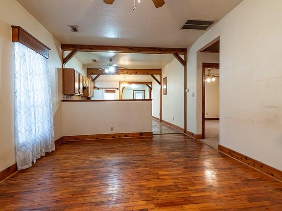 Situated on a quiet street, it's a short walk to the sports complex next to the high school. Only a few blocks from the swimming pool, this house has a spacious living room/kitchen area and two bedrooms. The bathroom is also large with an included laundry space. Front has a spacious covered porch, while the back has a great deck for entertaining that overlooks your large yard.