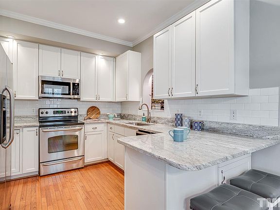 Multiple offers. Tucked on a quiet, tree-lined street, this Historic Oakwood charmer unites new and old with an impossible-to-find attached garage, a fully-fenced, thoughtfully planned backyard oasis, a rocking chair front porch and roomy master balcony perfect for coffee or cocktail sipping. Featuring hardwood floors, an updated kitchen, dual vanities, stainless steel appliances and close to Person Street, downtown and burgeoning Smokey Hollow, she's a beguiling find.