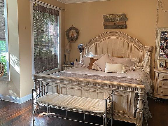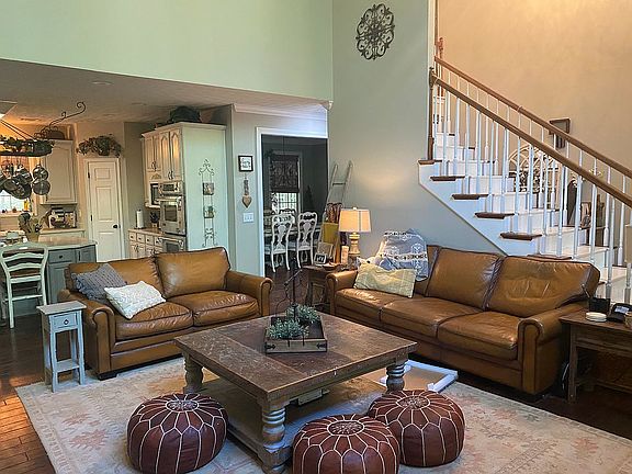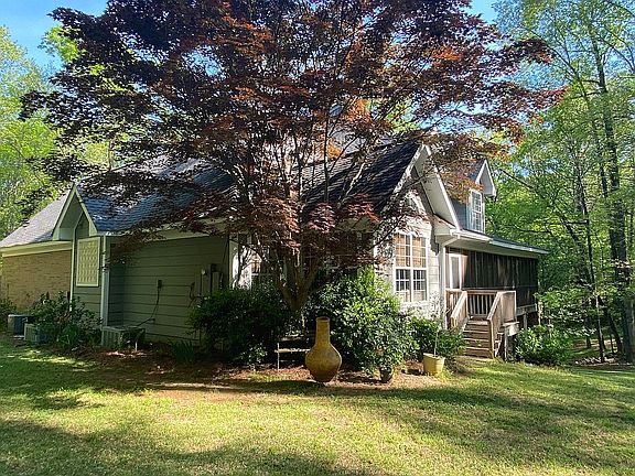 Beautiful home on over 3 wooded acres with old hardwoods and many flowering plants. It has 5 bedrooms and 3 1/2 baths. Oversized master on main with sitting room and 2 walk-in closets and a claw foot tub with separate shower. Open area kitchen with island and corian countertops and breakfast room overlooking huge living room with bookcases. Separate dining room. Laundry room and powder room on first floor, also. There are 2 bedrooms upstairs with a shared bathroom. Downstairs area has its own large family room, 2 bedrooms with walk-in closets and another bathroom. Front wrap around porch overlooks beautiful flowers and a natural spring. There is a rear screened in porch that wraps around most all of the back of the house. Hardwood floors throughout the main floor. Stained concrete floors on basement floor. Top floor has carpet and tile. Many upgrades have been completed since the house was built. The roof was replaced in 2020. The exterior of the house in Hardiplank siding. The walnut flooring was installed in 2012, as well as the upstairs carpet. The dishwasher and refrigerator was replaced in 2020. There is an outbuilding for storage of outdoor lawnmowers and equipment. There is a 40 acre lake that all owners of Ranchland Estates have access to to fish or no motorboat. There are no HOA dues.