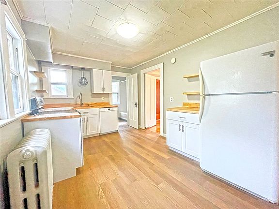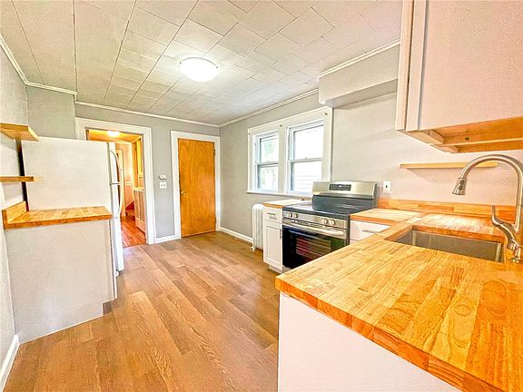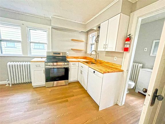 Discover the perfect blend of historic charm and modern updates. This inviting home features refinished hardwood floors, fresh paint, and an updated kitchen with butcher block countertops and luxury vinyl flooring in kitchen and first floor bathroom. Updated vanities and modern light fixtures enhance the bathrooms. Enjoy abundant natural light, leaded glass windows, and the ambiance of a wood-burning fireplace in the living room. The formal dining room offers elegant entertaining space, complemented by French doors adding a touch of sophistication. Additional highlights include a spacious front porch and a second-floor three-seasons room, perfect for relaxation. Located near the University of Rochester and Strong Hospital, this property offers convenience and comfort in a sought-after neighborhood. Don't miss out – schedule your showing today! Delayed Negotiations July 8th at 7PM