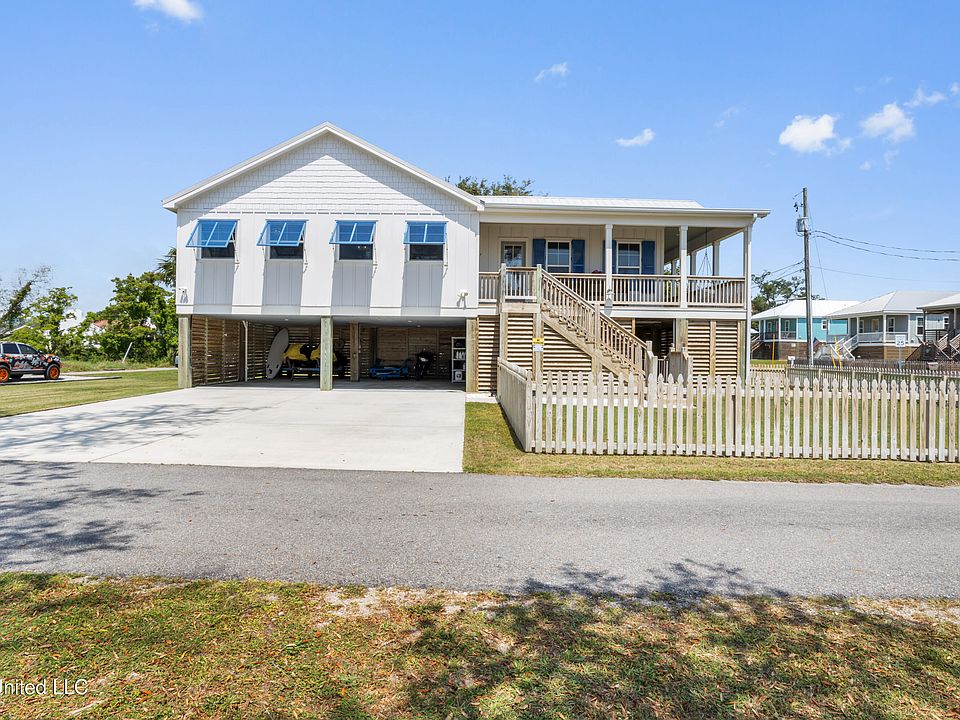 Beautiful custom 3BR/2BA beach home just a 3-minute walk to the Gulf! Situated on a .23-acre gated lot in desirable West Gulfport, this home offers stunning Gulf views from the wrap-around deck, living room, and master suite. Interior features include 9-ft entry doors, engineered hardwood flooring, crown molding, granite countertops, custom cabinetry, a gas stove, and travertine finishes in the master bath. Move-in ready with ALL appliances included. Storm-ready with aluminum shutters, this home also includes RV parking with a 50-amp hookup (EV compatible). Downstairs, you'll find two enclosed storage areas, each with a roll-up door and a man door, plus a generator transfer switch. Easy access to all the Mississippi Coast has to offer!