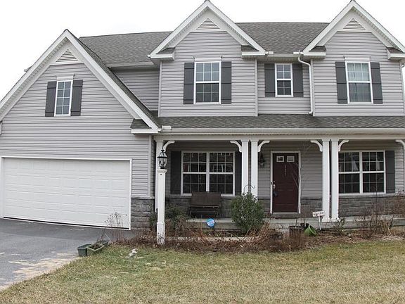 Enjoy the wildlife and water fowl from the elevated deck with views of the stream and adjoining pond. The first floor features 9' ceilings, a spacious kitchen with large island, walk-in pantry and breakfast room that accesses the large deck overlooking the backyard. The family room sits beside the kitchen allowing a great space for entertaining. A formal dining room, study and powder room complete the first floor. Upstairs you will find 4 bedrooms, 2 bathrooms and the laundry room. Every bedroom has a walk-in closet with the owner's suite featuring an amazing 12x12 closet, full bath and windows overlooking the pond. The garage is an oversized 2 car for extra storage or workspace. The unfinished basement has 2 doorways leading to the backyard and roughed in plumbing for a future bathroom, poured concrete walls, a passive radon system and a Delta MS waterproofing barrier to ensure a dry basement. Sidewalks and street lights make this a great neighborhood for walking. No home owner's association! Home warranty included!