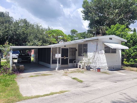 2 Bed 1 Bath 1963 single wide mobile home. This home comes with a large carport, entraces on both the back and front of the home. There is an enclosed porch with jalousie windows, this home also has laundry hookups ready. The kitchen cabinets are in great condition. The bathroom shower has a sliding glass door Sunny Acres is a 55+ Community with a $500 lot rent. Small pets allowed.