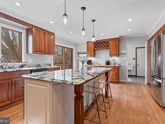 Stunning All-Brick Colonial with No HOA or City Taxes! Welcome to this beautifully remodeled all-brick colonial in Hillside Estates, offering timeless elegance and modern upgrades. Nestled on a serene 1.4 acre lot, this home boasts hardwood floors throughout and exquisite crown molding for a touch of sophistication. The gourmet kitchen is a chef’s dream, featuring granite countertops, a 7-foot island, double ovens, a 5-burner gas cooktop, and a wet bar area—perfect for entertaining. Off of the kitchen is a formal dining area for all of your holiday gatherings. A spacious family room with large bookshelves and a brick fireplace. A spacious mudroom off the two-car garage adds convenience to your daily routine. Upstairs, the luxurious primary suite is a retreat in itself, offering a spa-like bathroom with a walk-in shower, dual controls, and a double sink vanity. Three additional bedrooms, all with custom closet organizers, provide ample space. The finished basement is a versatile space, complete with a rec room, bedroom, full bath, storage, and windows for natural light. A walk-out leads to a stunning backyard featuring a beautiful patio, deck, hot tub, and an in-ground gunite pool—your own private oasis! Large fenced in area ready for your Spring Garden. Replacement roof, windows, updated bathrooms in 2016, Easy commuter access to Rts. 15/340/40/70/270. Enjoy the freedom of no HOA or city taxes while living in a home that perfectly balances elegance and comfort. Don’t miss this exceptional opportunity—schedule your private tour today!