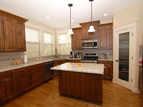 Beautiful newer home, sought after gated golf course community. Slab granite, hardwood floors, stainless steel gas appliances, custom cabinetry, detailed trims throughout. Soak tub, walk in closet and custom tile shower in master. 4 bedrooms, plus vaulted bonus and an office/den. Upgraded second bath, 1/2 bath and laundry room. Brand new backyard lines a shallow ravine, very peaceful. One block to park with courts, play structures and walking trail. Still like new!