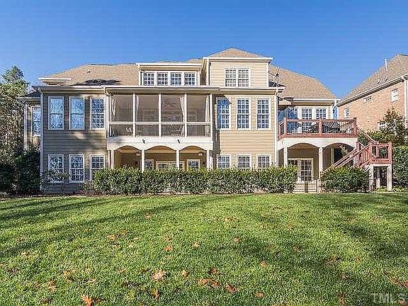 Beautiful large home on beautifully landscaped lot! 5 BR + bonus room, ~6000 SF of fin space. 1st fl MBR and office. High-end kitchen w/ gran, tile backsplash & SS appl. 2 fp's, built-in cabinetry, hwd flrs, 3-car garage, scr porch, patio & covered front porch. Large walkout basement with 10ft ceilings finished in 2014 includes a second Master BR/bath, office, exercise room, library, family room and 2nd Kitchen/dining, + large work room and storage room, outdoor shower, and hot tub. Lot looks out on unbuildable forest.
