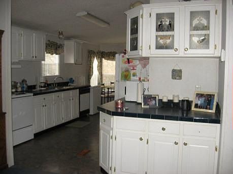 Beautiful country setting, nicely landscaped on just over an acre lot. Huge kitchen with ample countertops, cabinets, a large pantry, and all appliances including the washer & dryer. Fenced dog pen, and storage building. Home offers a nice side and back deck. Large master bath with a garden tub, shower, and double vanity sinks. Wonderful starter home. A one year HSA home warranty is included.