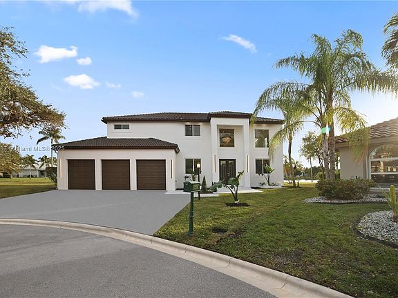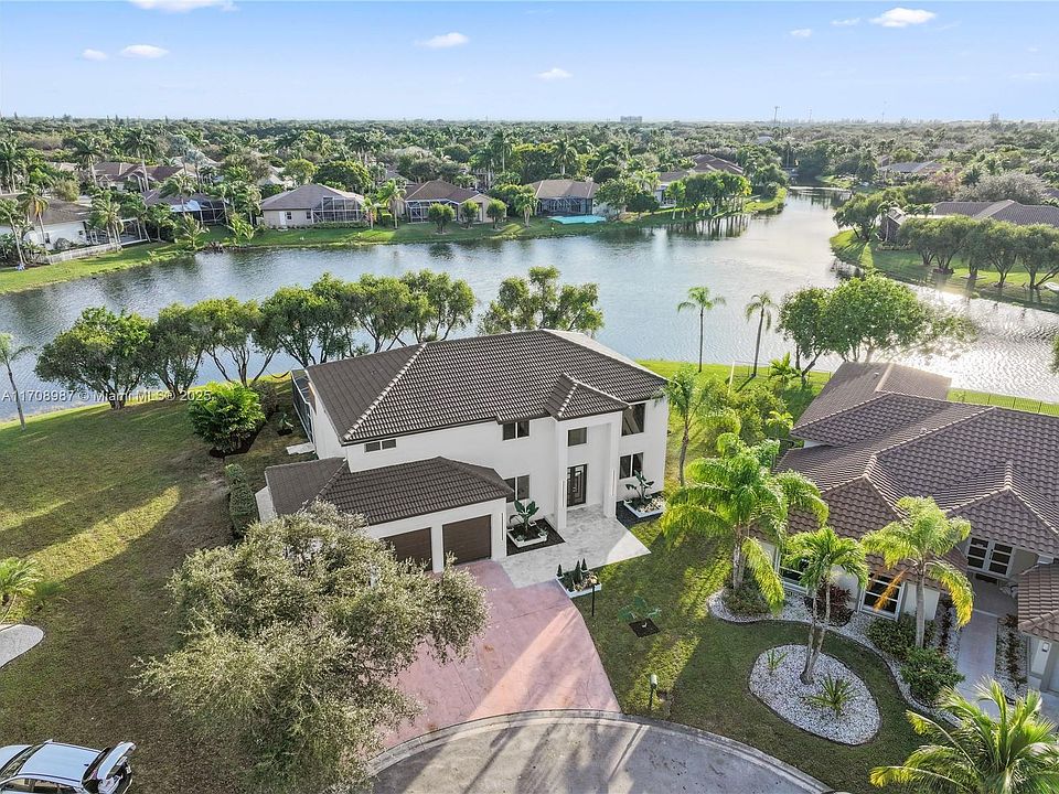 It’s the thoughtful details that make this lake front home Unique! Completely updated, including brand new modern kitchen with Butler pantry, all new bathrooms and hardware, 2 new A/C units, new air ducts and modern vents All new appliances, plus complete new impact windows and doors Even the walls and insulation are new, if you can believe it Beautiful 48x48 porcelain downstairs and stained wooden floors upstairs. Two en-suite bedrooms open to new terrace over the pool and facing the lake and sunsets Pool & pool deck also resurfaced, large driveway, and finished 3 car garage, offering a perfect blend of elegance and comfort This is perfect for someone searching for a distinct home with undeniable elegance and exceptional finishes at the end of the cul-de-sac NEW Staged furniture