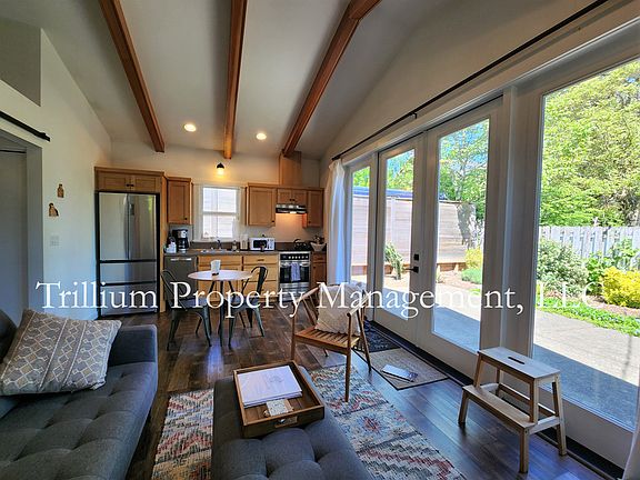 Private, secluded, free standing garden unit with huge windows, one bedroom. Enjoy the outdoors all year from the large outdoor patio. This lovely free standing ADU home has a separate private entrance, and is right in the center of all the best that the Woodstock neighborhood has to offer. Not visible from the street. Close to transit, restaurants, shops, groceries, and bike lanes. It is newly built and impeccably clean. Lovely fir trim, higher end finishes, AC, dishwasher, washer/dryer in unit. Private gate entry, fully fenced, driveway parking. Limited showings as it is occupied. Garbage/gardening included. No smoking on the premises, two indoor pets max, 20 lbs max, no exceptions. One year renewable lease, full first, full last, and 1/2 month's rent deposit to move in, no smoking on the premises, proof of renter's liability insurance required before and during tenancy, $38 application fee for all adults. The Open Application Period will begin on 6/11 at 8:00 am, This is not a type A accessible unit. In person and remote viewings available via Zoom, please make a note of it in the appointment scheduling app. The complete notices, contact form, application, and screening criteria are available from the trilliumpdx website. Briefly, they are: 2x the rent in monthly income or 2x the annual rent in liquid funds, 3 years of positive, current, complete, rental references or mortgage history, no negatives on a credit report, reasonable verification of identity, max 20% debt to income ratio, cosigners not accepted. Applicants must be prepared to sign a lease within two days of approval, units can't be held longer than 14 days. Applications are processed in the order received, and per City of Portland regulations. All adult occupants will need to be screened separately, and to pay for screening, including background and/or financial depending on applicant financial consideration status. Screening fees are $38 per adult,.